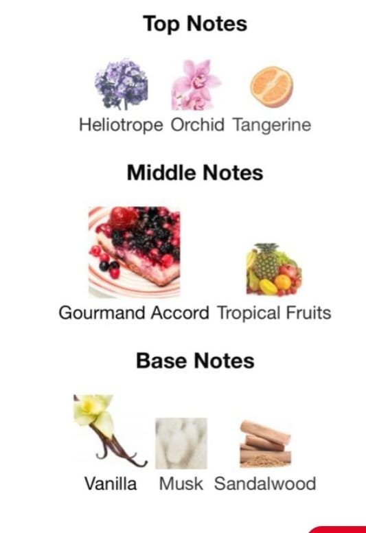 Middle notes: Gourmand Accord and Tropical Fruits